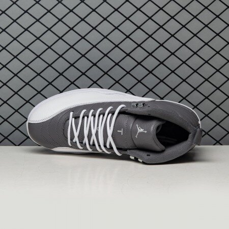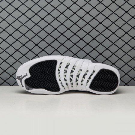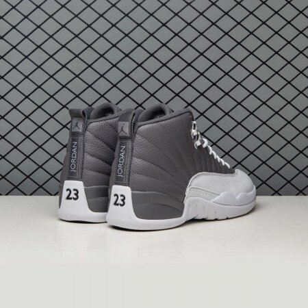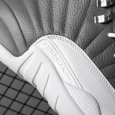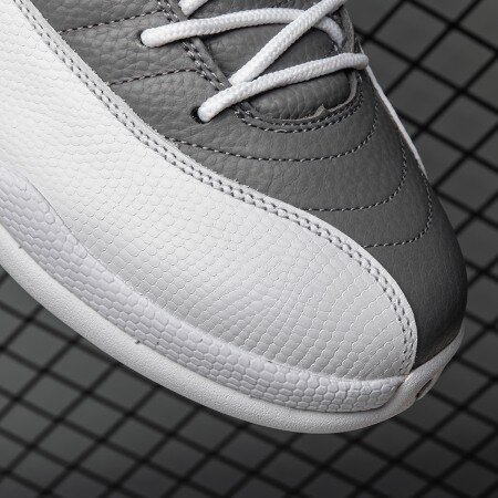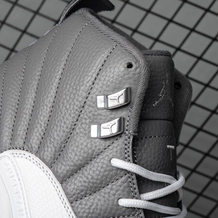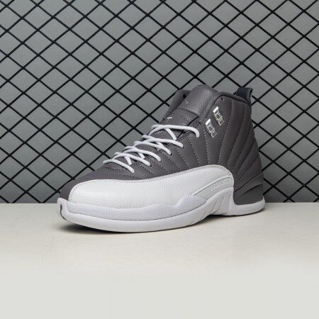 The Air Jordan 12 Retro 'Stealth' brings a neutral color palette to the historic silhouette that introduced Zoom Air cushioning to the Jordan line. The grey tumbled leather upper features the 12's signature stitched lines and a lizard-textured overlay in a solid white finish. Signature Jumpman branding appears on the tongue and heel tab. The mid-top rests on a lightweight Phylon midsole, supplemented by a full-length Zoom Air unit and supported by a herringbone-traction rubber outsole.