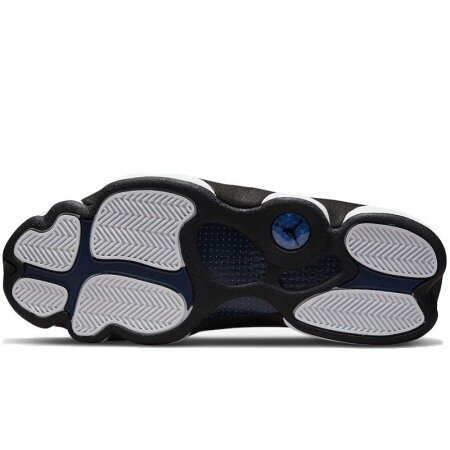 Drawing inspiration from the 1998 Air Jordan 13 Low Navy, the Air Jordan 13 Brave Blue features a black tumbled leather upper with Brave Blue mesh overlays and black Durabuck underlays. At the collar, a Jumpman hologram commemorates the design's signature styling. A sculptural white and black EVA foam sole provides support for daily wear.