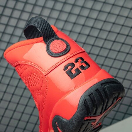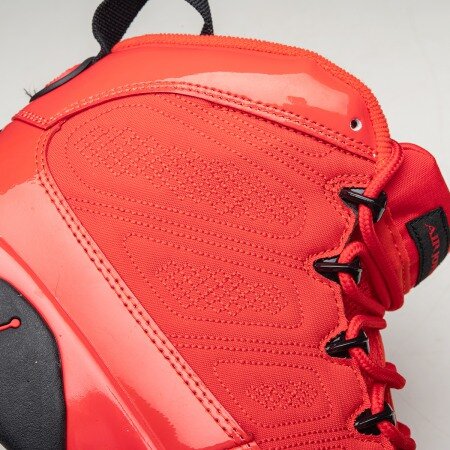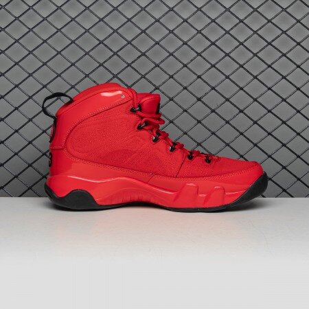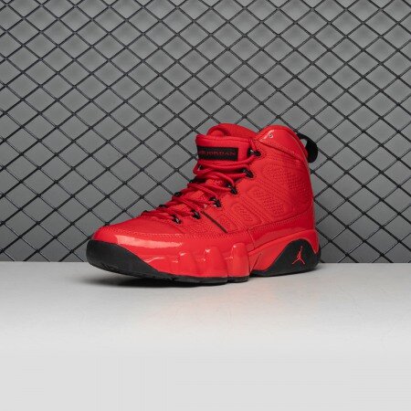 The Air Jordan 9 Chile Red arrives with a Chile Red Durabuck construction with matching patent leather mudguards and quilted paneling. At the heel, an embroidered "23" and rubber Jumpman insignia stay true to the model's original detailing. From there, a muted black sole and matching lace hooks complete the design.