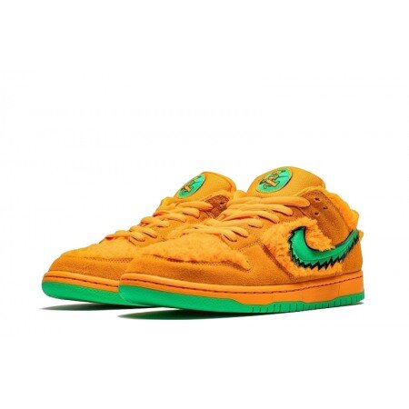 Nike Skateboarding teamed up with legendary psychedelic rock band Grateful Dead and San Francisco-based skate shop FTC to release the special edition Nike SB Dunk Low Grateful Dead Bears Orange. As the first release of a series of three Grateful Dead colorways, this Nike SB Dunk Low pays homage to the Grateful Dead Bears, a series of stylized dancing bears illustrated by Bob Thomas on the back cover of the album History of the Grateful Dead, Volume One (Bear's Choice) in 1973.