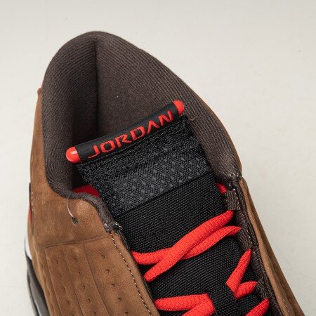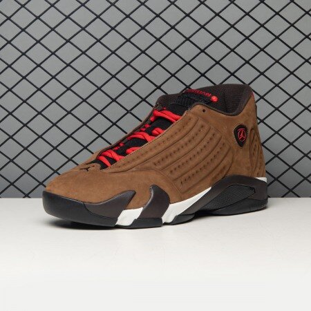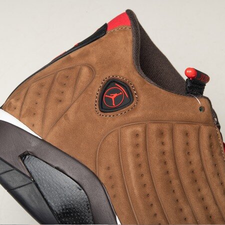 To keep your feet dry and protected from the elements, the Air Jordan 14 Winterized Archaeo Brown arrives with a vacuum-molded upper constructed of water-resistant, winterized suede. Hits of Chile Red and black on the signature Jumpman ankle emblem and heel add the finishing touch.