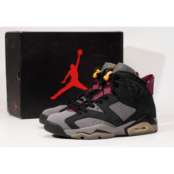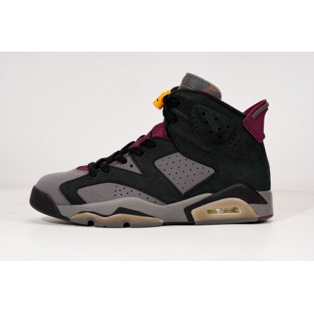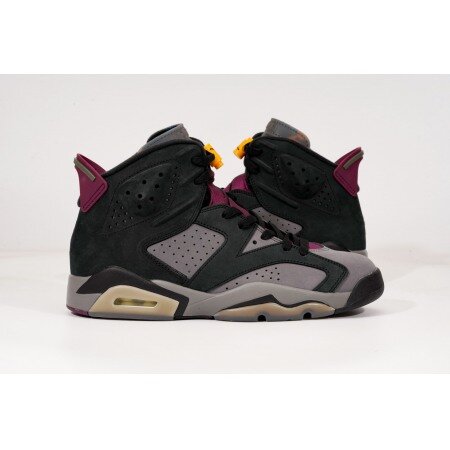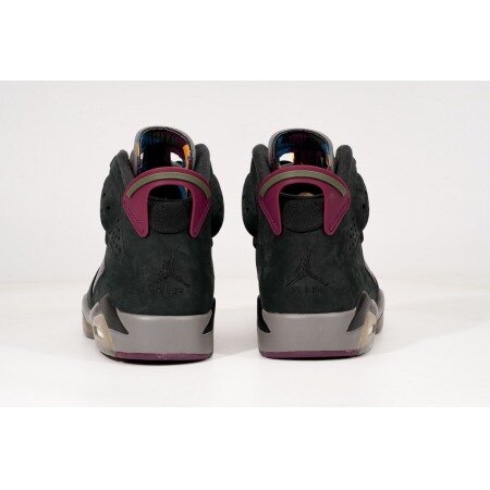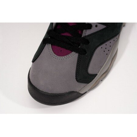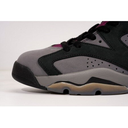 The Air Jordan 6 Bordeaux features a two-tone black and grey Durabuck upper just like the original Jordan 7 Bordeaux. From there, the signature Bordeaux geometric pattern is prominent on the inner-facing tongue and sock liner. Jumpman embroidery on the heel and a semi-translucent outsole complete the retro look.