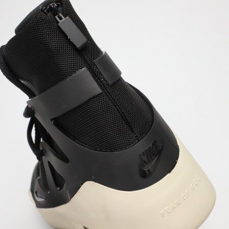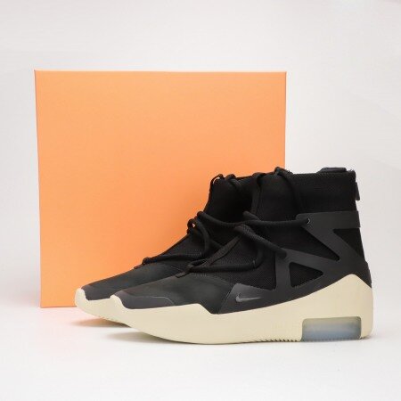 Jerry Lorenzo takes a stroll down Nike avenue and cooks up the Air Fear Of God 1 Black. This FOG1 comes with a black upper, black Nike "Swoosh", white midsole, and a translucent sole.