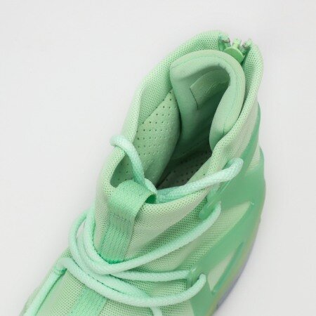 The Nike Air Fear Of God 1 'Frosted Spruce' continues the procession of ultra-modern basketball footwear which began in 2018 with the first Air Fear Of God sneaker. The silhouette was created in partnership with the details-obsessed Jerry Lorenzo, originator of the Fear Of God label. This bright rendition from June 2019 features a mesh upper, a heel cage inspired by the Huarache Light and a zipper closure at the back. The shoe is supported by double-stacked Nike Zoom Air cushioning.