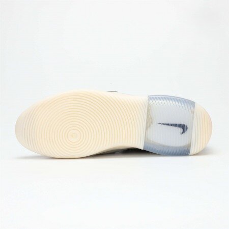This Fear of God 1 is composed of a black mesh and string suede upper. A rubber caged lace unit, Nike Air unit, and back heel zipper completes the design.