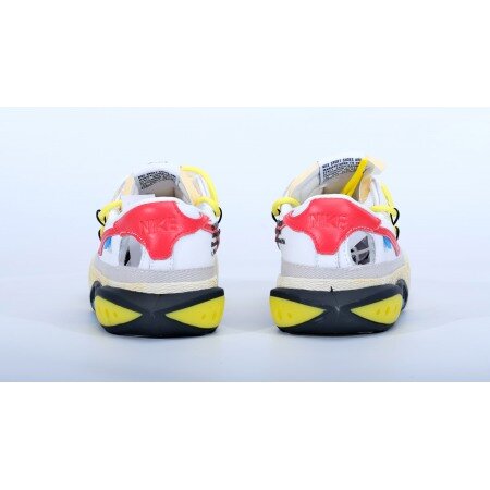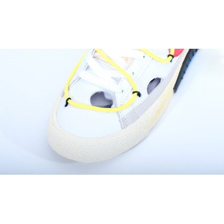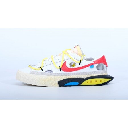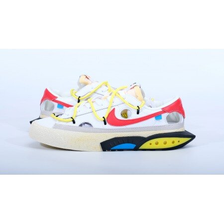 The Nike Blazer Low Off-White White University Red boasts a multi-disciplinary, multi-sport aesthetic - a central motif in Virgil Abloh's body of work. Encompassing aspects of basketball, skateboarding, and trail running silhouettes, the Off-White Blazer Low fuses an Air Terra Humara TPU heel piece with a classic vulcanized sole for a unique base. On the white leather upper, punched-out holes are scattered, similar to the Air Jordan 5 Off-White. An accented over-lacing system, exposed foam tongue, zip tie tag, and Swoosh tab all add Off-White's signature detailing to this modified classic.