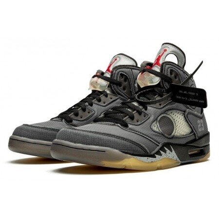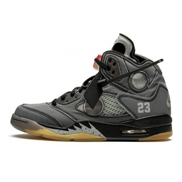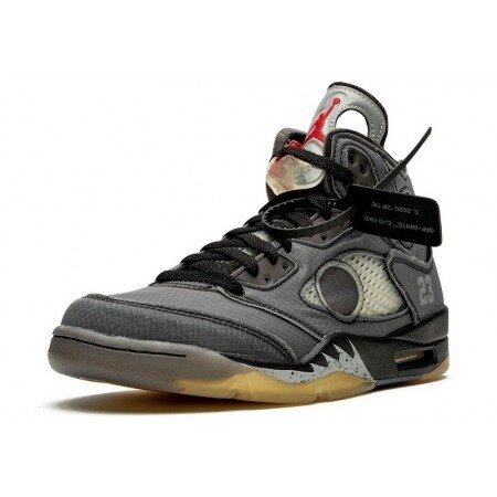 Virgil Abloh added a second Jordan silhouette to his series of Nike collaborations with the Jordan 5 Retro High Off-White Black. This release pays homage to the first Jordan that Virgil ever owned, the Air Jordan 5 Black Metallic. In signature fashion, Virgil has reimagined this classic silhouette in a way that embraces the importance of Nike Air technology.