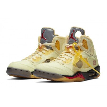 Virgil Abloh added a second colorway to his Jordan 5 collaboration with the Jordan 5 Retro High Off-White Sail. This release pays homage to the first Jordan that Virgil ever owned, the Air Jordan 5. In signature fashion, Virgil has reimagined this classic silhouette in a way that embraces the importance of Nike Air technology.This Jordan 5 is comprised of a sail textile mesh upper with translucent netted panels and circular window inserts throughout the shoe. 3M reflective tongues, fire red Jordan branding, and an aged translucent outsole completes the design. These sneakers released in 2020.